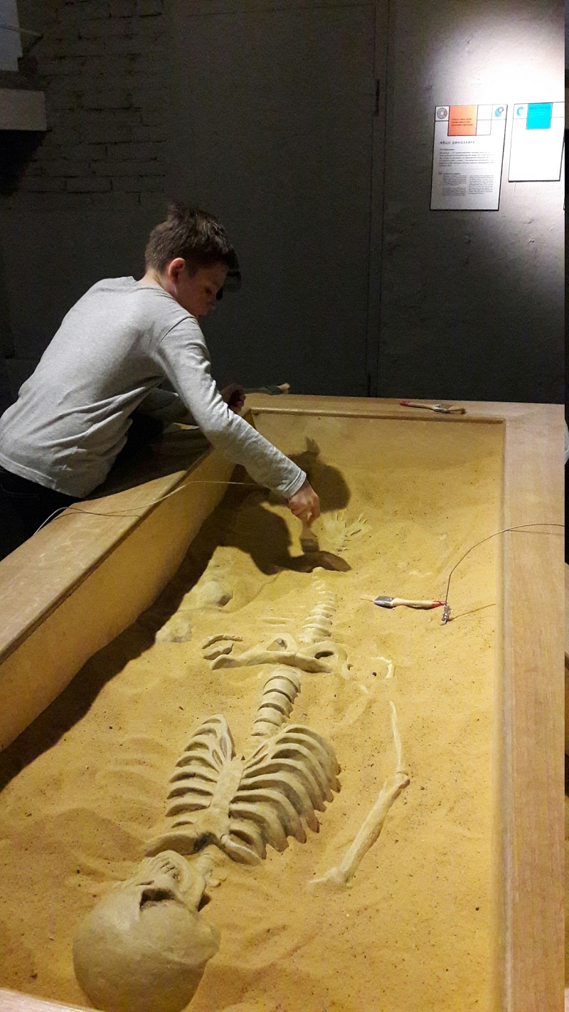 Экскурсионная группа, временно превратившись в палеонтологов, занималась раскопками скелета русалки, а также смогли изучить образец мозга различных птиц, рыб и животных и даже посидеть в яйце динозавра.