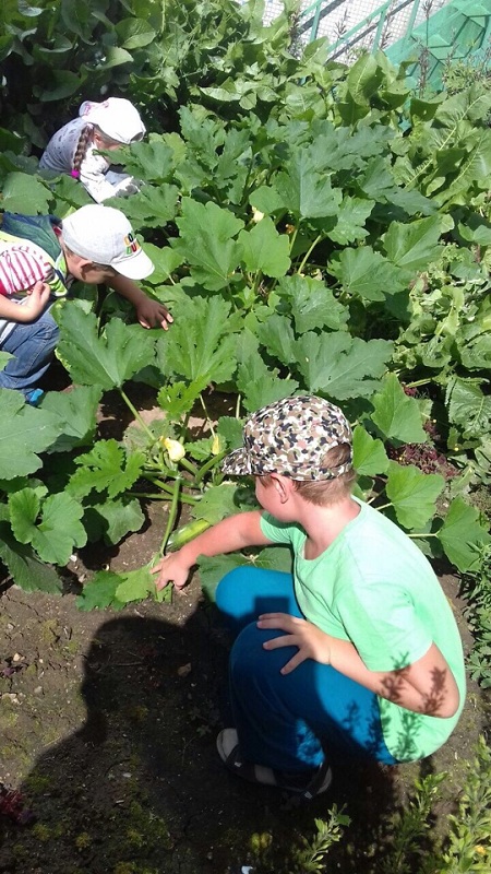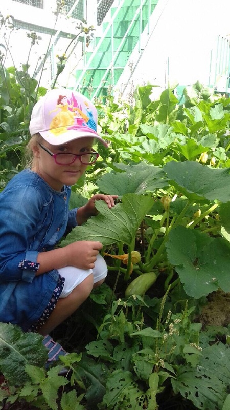 На территории дошкольного отделения образовательного комплекса есть огород, за которым ухаживают маленькие воспитанники школы вместе с их воспитателями. Организован сад педагогами был для того, чтобы дети научились трудиться в коллективе, познакомились с представлениями об ответственности и экологии.