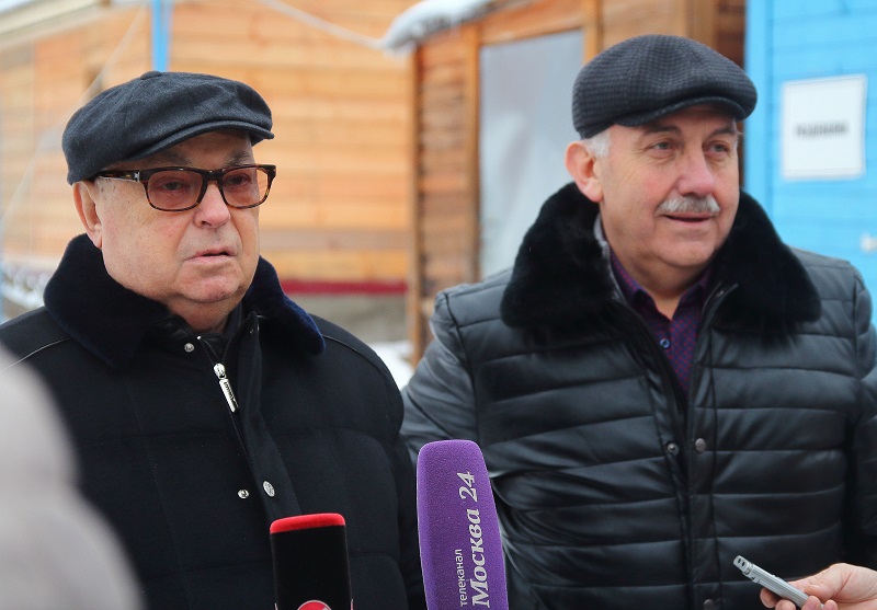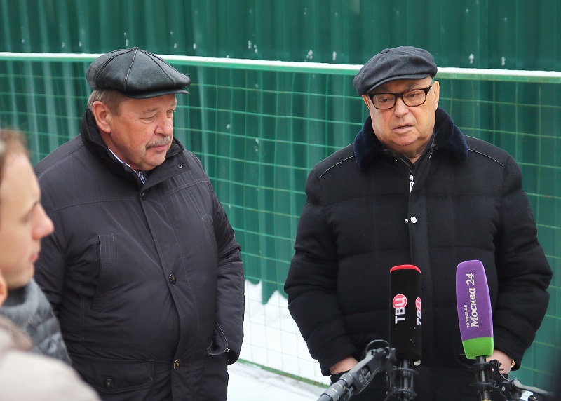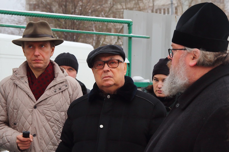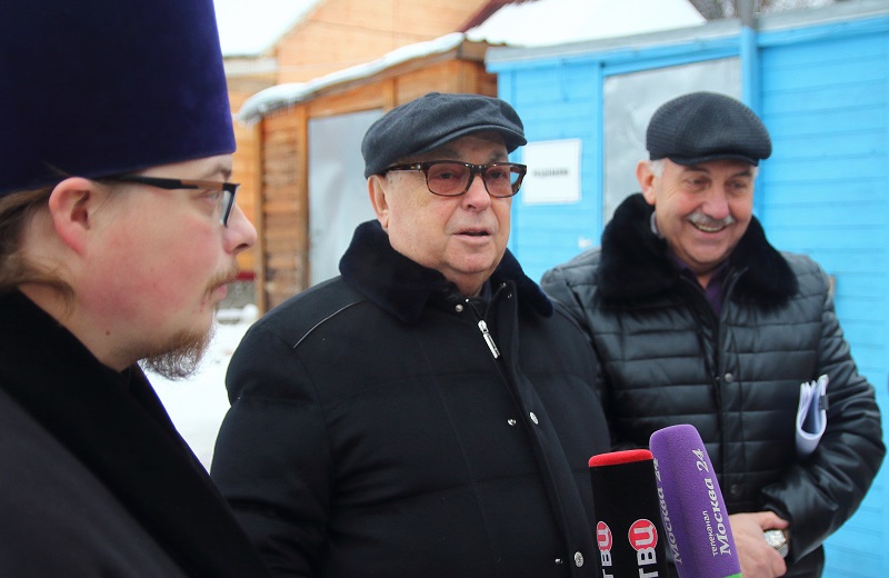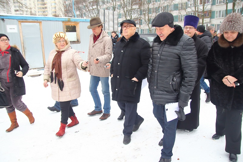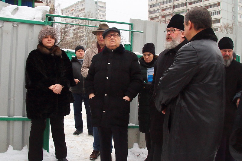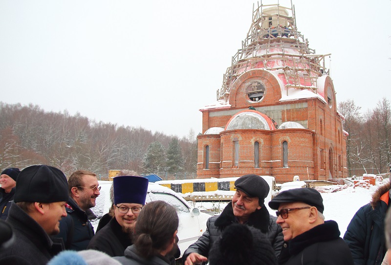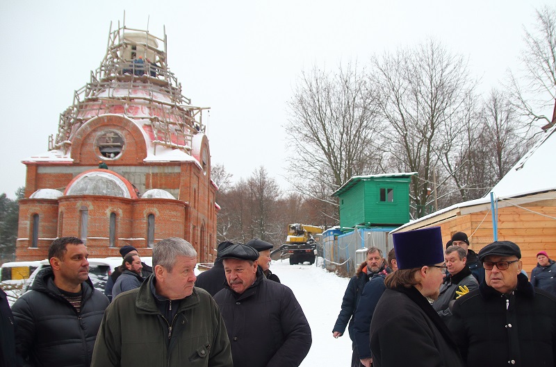 Далее Владимир Ресин осмотрел ход работ по строительству храма в честь святителя Киприана, митрополита Киевского и всея Руси. Он возводится на улице Красного Маяка, вл. 19, корп. 1. На сегодняшний день в храме ведутся кровельные работы, выполнено утепление кровли и в ближайшее время начнется ее покрытие медью. Эти работы будут проводиться с помощью болгарского подворья. Сегодня на участке возле строящейся церкви установлен временный деревянный храм, где проводятся службы. Также сегодня ведутся работы по изготовлению купола и креста, установить которые, как рассказал настоятель храма, иерей Александр Иванченко, планируется в следующем году. Владимир Ресин попросил строителей успеть завершить основные отделочные работы внутри храма к предстоящей Пасхе, чтобы отслужить здесь праздничную службу.