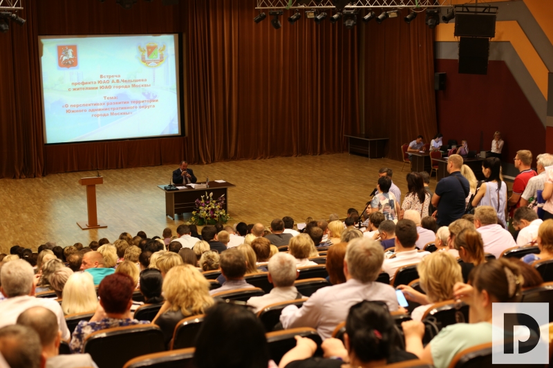 О перспективах развития территорий Южного округа Москвы пошла речь на очередной встрече префекта ЮАО Алексея Челышева с жителями. Состоялась она 27 июня в спортивно-педагогическом колледже Москомспорта. В работе встречи приняли участие представители префектуры Южного округа, управы района Чертаново Южное, муниципальные депутаты, руководители образовательных учреждений, общественных организаций и др. Жители, присутствующие на встрече, смогли лично задать интересующие их вопросы префекту ЮАО.