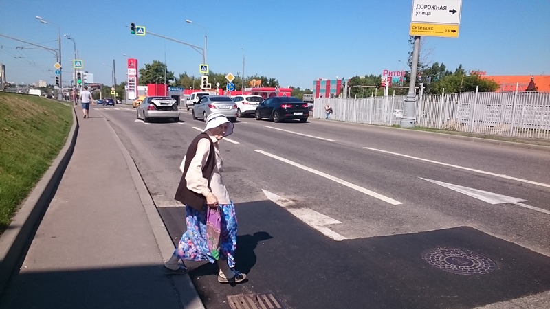 В последнее время с открытием возле улицы Дорожной крупного торгового центра и супермаркета, в этот район стали часто ходить и пенсионеры за покупками. Спокойно смотреть на то, как пожилые люди с палочками и тяжелыми сумками ходят из торгового центра на остановку на Варшавское шоссе, просто невозможно.