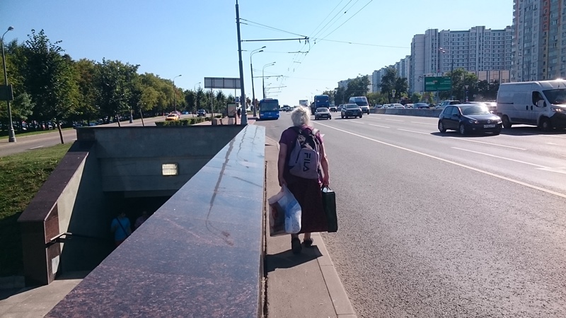 Далее пешеходы держат путь в направлении Дорожной улицы, где им необходимо перейти еще один регулируемый перекресток. После этого по прямой до станции — метров 400. Молодые люди легко преодолевают это расстояние, а вот люди пожилого возраста хотели бы доезжать до станции «Чертаново» на автобусе. Им ходить сюда от Варшавки далековато.