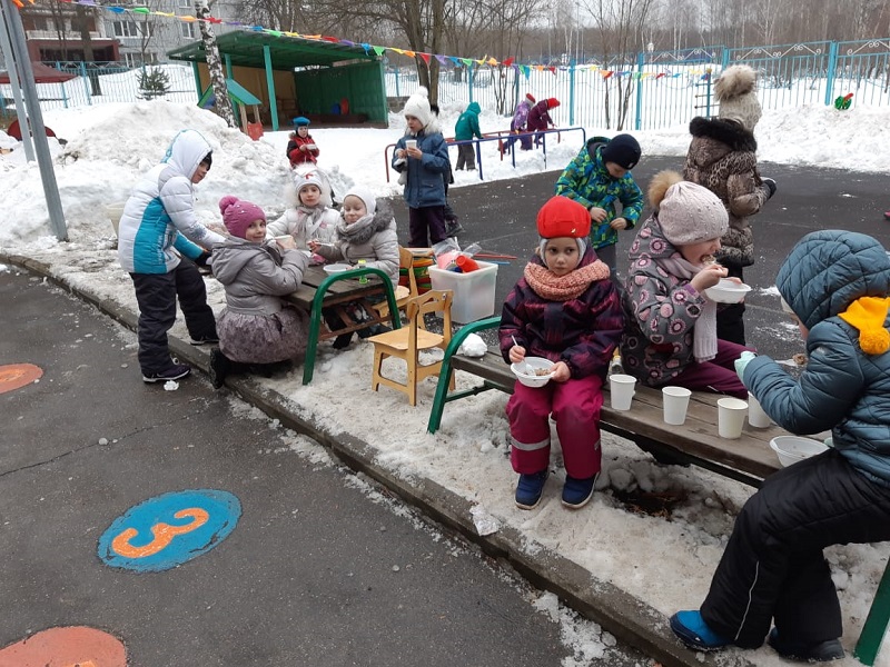 Военно-патриотическое мероприятие прошло в дошкольном отделении образовательного комплекса № 556. Длился праздник около двух часов. После насыщенной и интенсивной игры нужно было обязательно подкрепиться.
