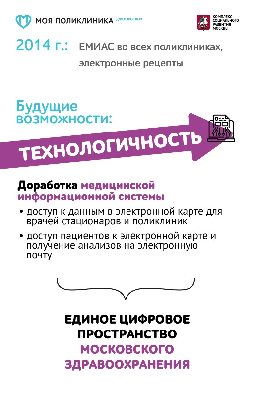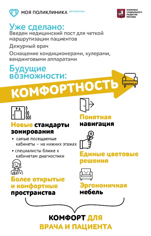 Благодаря новой интуитивно понятной навигации у пациентов больше не возникнет проблем с поиском необходимого кабинета или отделения вне зависимости от поликлиники, в которой он находится.