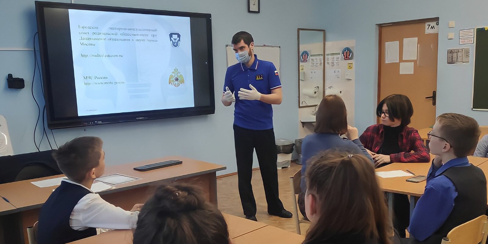 Оператор Службы 112 Москвы Дмитрий Андреев провел для школьников интеллектуальную игру «Брейн-ринг» по вопросам безопасности жизнедеятельности.