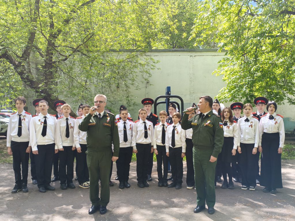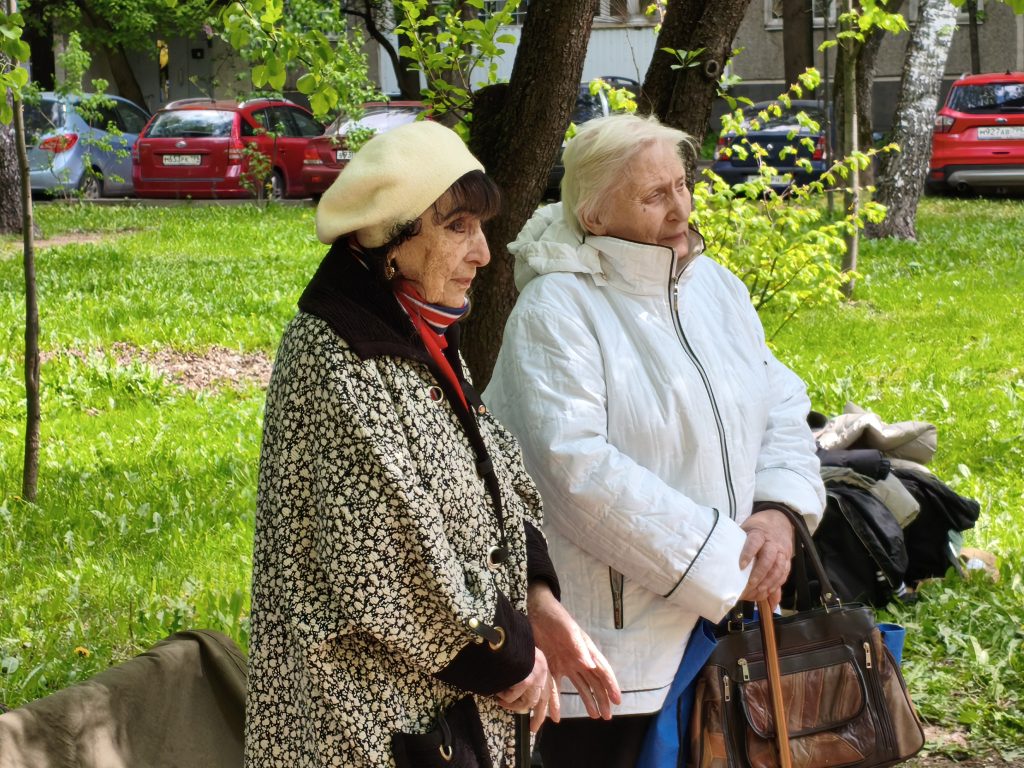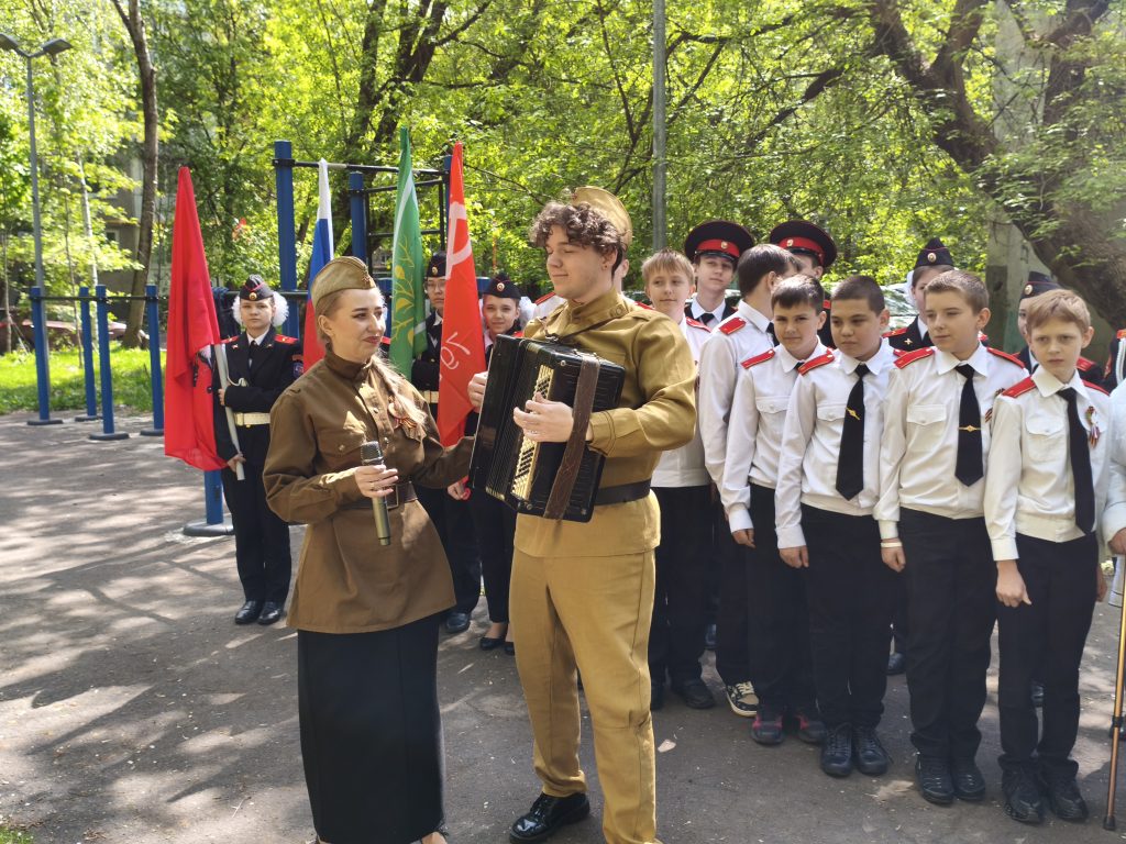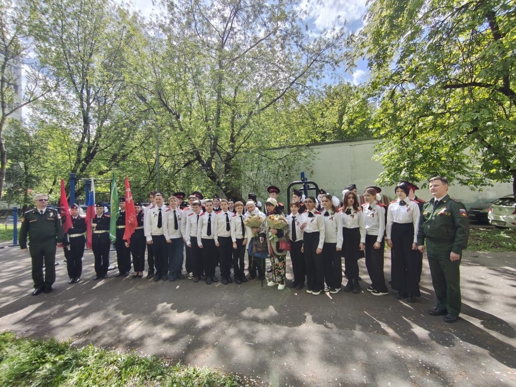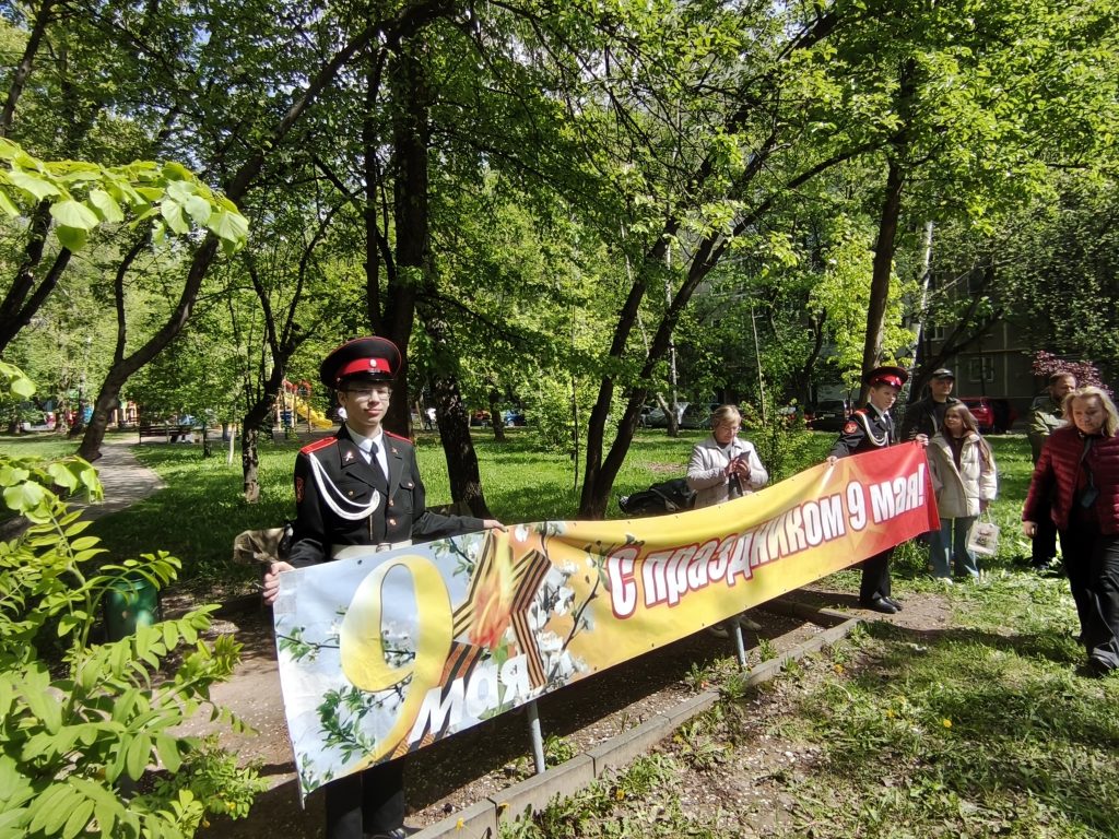 В этот день в гости к ветеранам, живущим на улице Красного Маяка, пришли артисты и учащиеся кадетского класса школы №1582. Поздравление провели на улице во дворе рядом с домом, где живут женщины. Вместе со школьниками перед главными героинями мероприятия выступили старшие воспитатели Игорь Щеголев и Руслан Лящук. Они — профессиональные музыканты, их выступление просто покорило женщин.