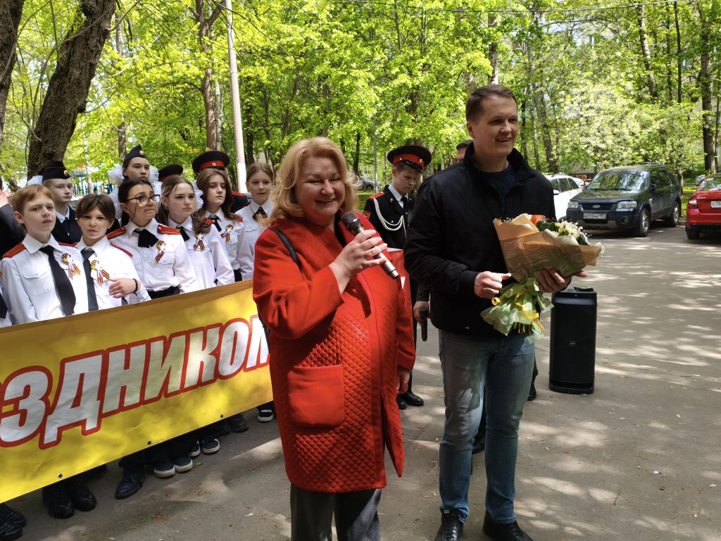 Заместитель главы управы района Андрей Быстров, муниципальный депутат Елена Репкина и руководитель аппарата Совета депутатов муниципального округа Чертаново Центральное Анна Гурова вручили ей красивый букет. Поздравления с праздником также прозвучали от учащихся кадетского класса школы №1582 и приглашенных артистов.