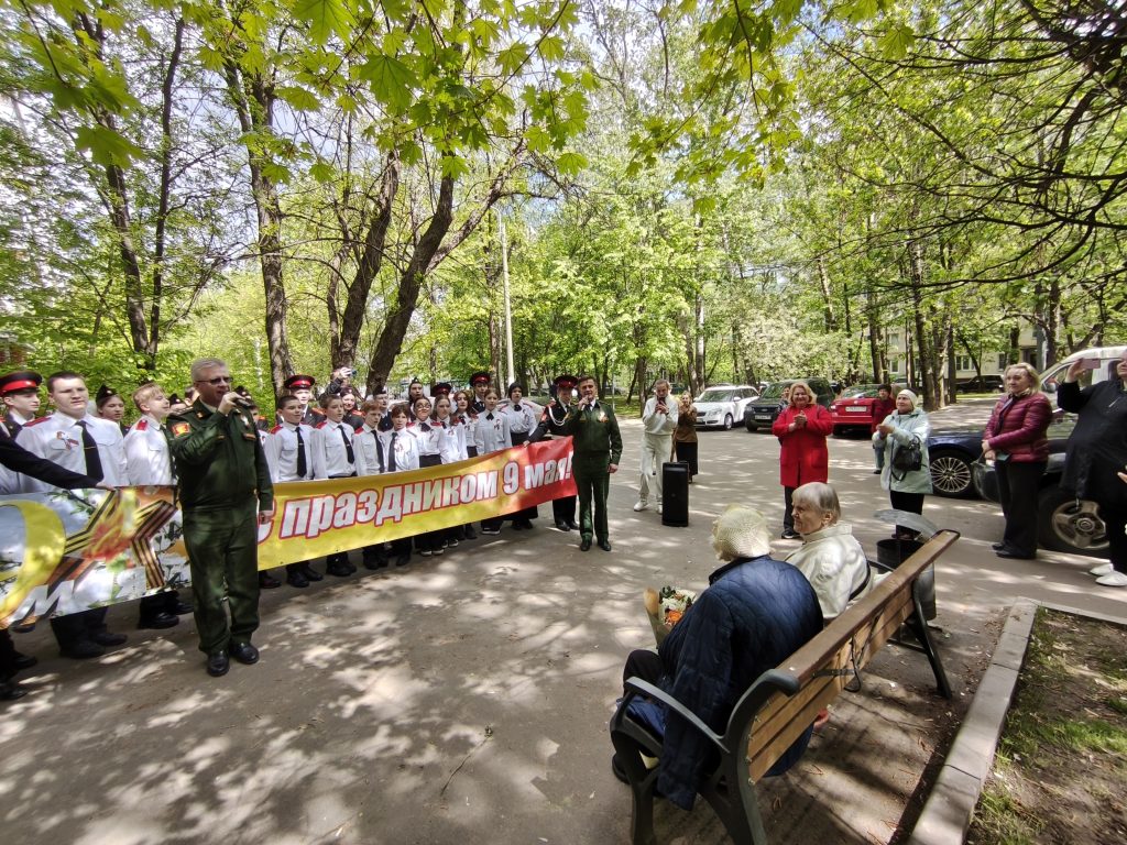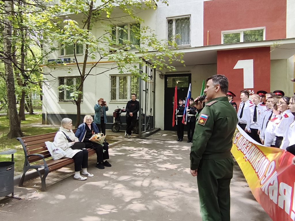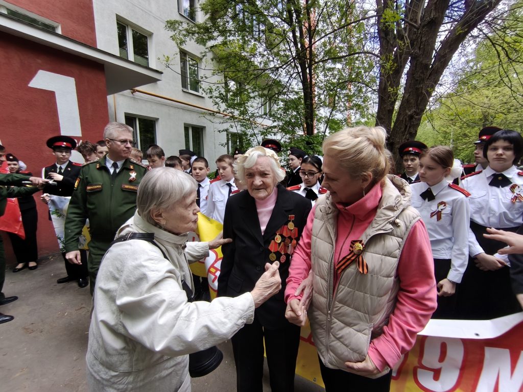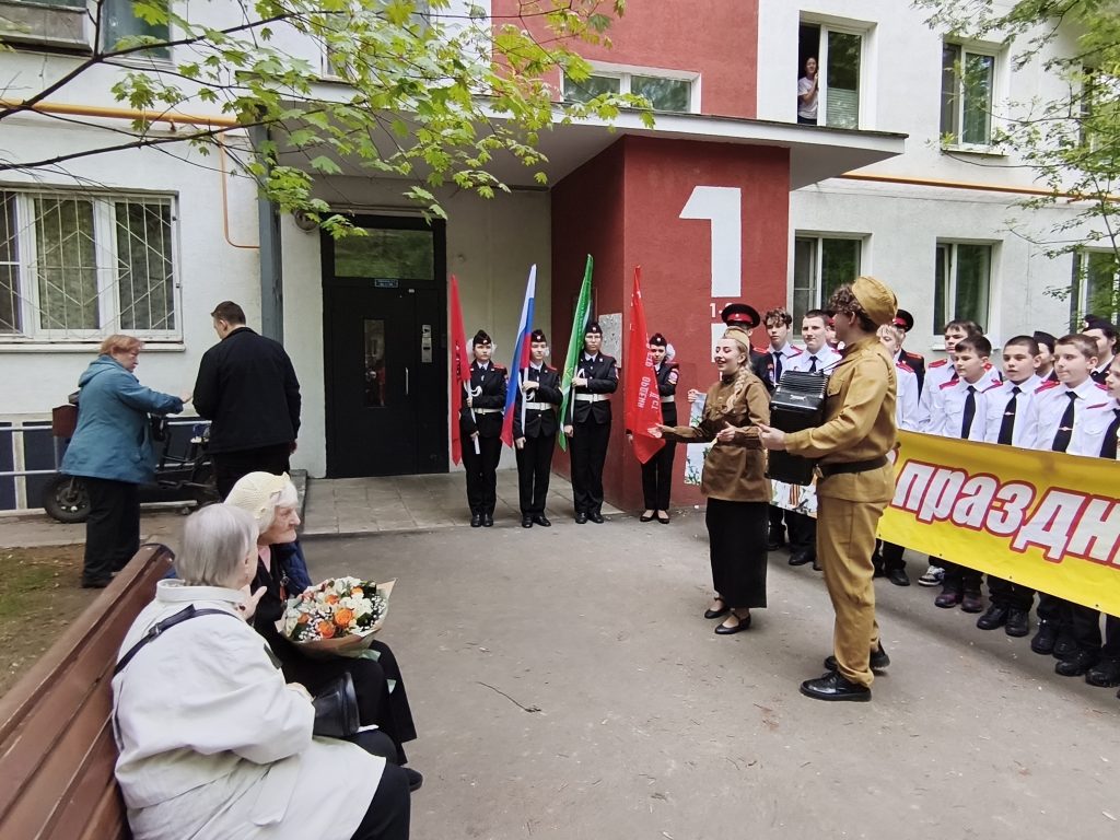 Концерт прошел на улице во дворе рядом с домом, где живет Екатерина Семеновна. Вместе со школьниками выступили старшие воспитатели школы №1582 Игорь Щеголев и Руслан Лящук. Они — профессиональные музыканты, их выступление просто покорило зрителей. Вместе с Екатериной Семеновной праздничный концерт посмотрели ее родственники, а также соседи по дому.