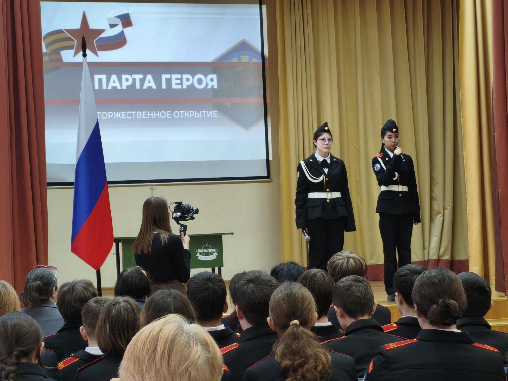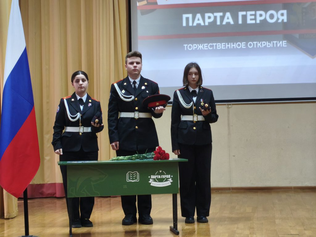 Торжественное открытие «Парты Героя» прошло 7 мая в школе №556. Мероприятие было приурочено к 80-летию Победы в Великой Отечественной войне. В нем приняли участие директор школы, депутат Совета депутатов муниципального округа Чертаново Центральное Евгения Ларионова, педагоги и учащиеся кадетских классов.