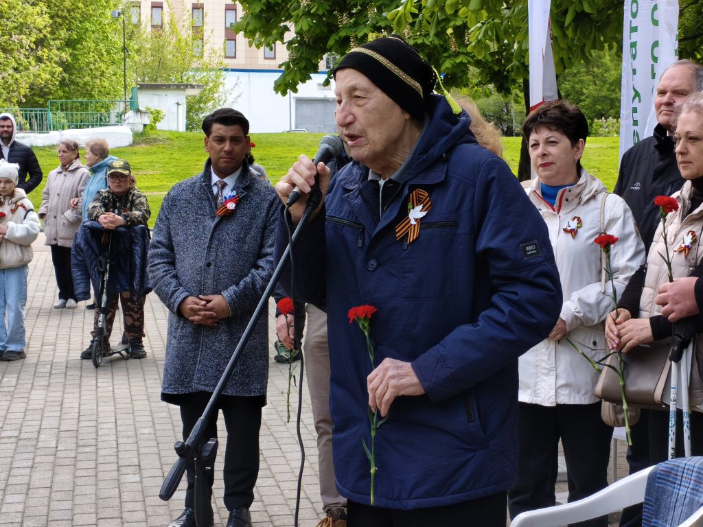 К числу участников торжественного митинга присоединилась и старожил района 89-летняя Ольга Михайловна Баринова. Она — ветеран труда, почетный житель муниципального образования Чертаново Центральное.