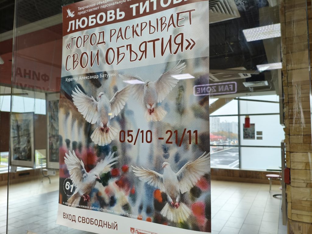 Выставка «Город раскрывает свои объятия» открылась 5 октября в галерее Творческого объединения «Художники Чертанова». Автор работ — художница Любовь Титова, которая выполняет свои работы в технике акварель.