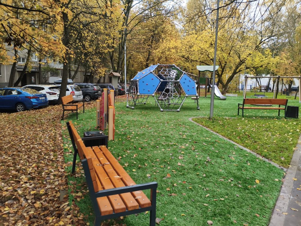 Здесь проведен ремонт около 3 тысяч квадратных метров проезжей части и обновлено 1200 квадратных метров тротуаров. Также в рамках программы во дворе дома появилась новая детская площадка, завершены работы по обновлению около 8 тысяч квадратных метров газона.