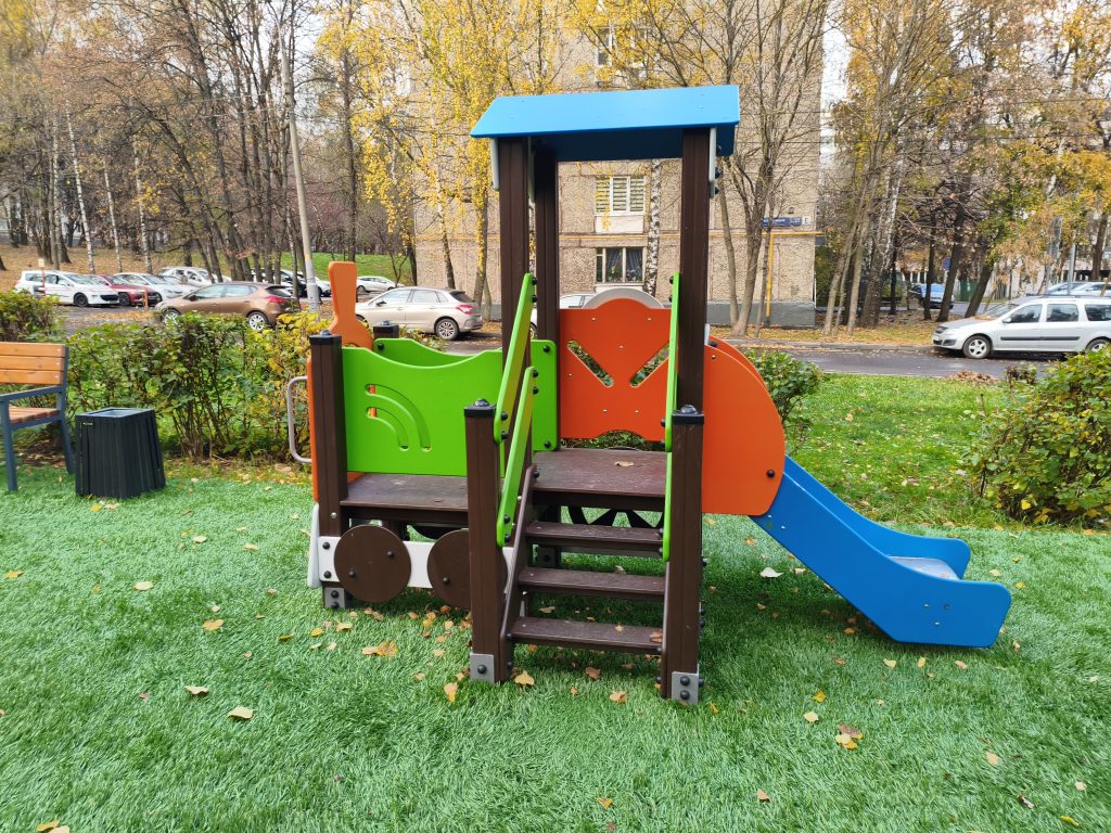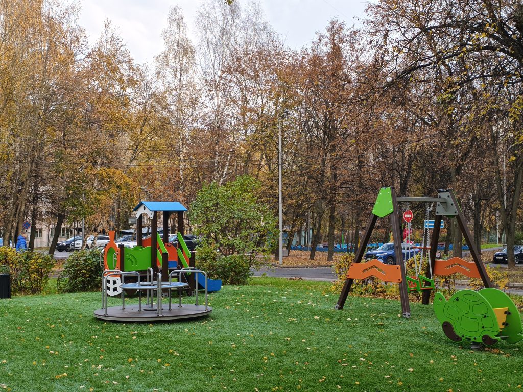 Также на территории дома была обновлена детская площадка. Здесь были установлены новый детский городок, качели и песочница, которые радуют сегодня детвору.