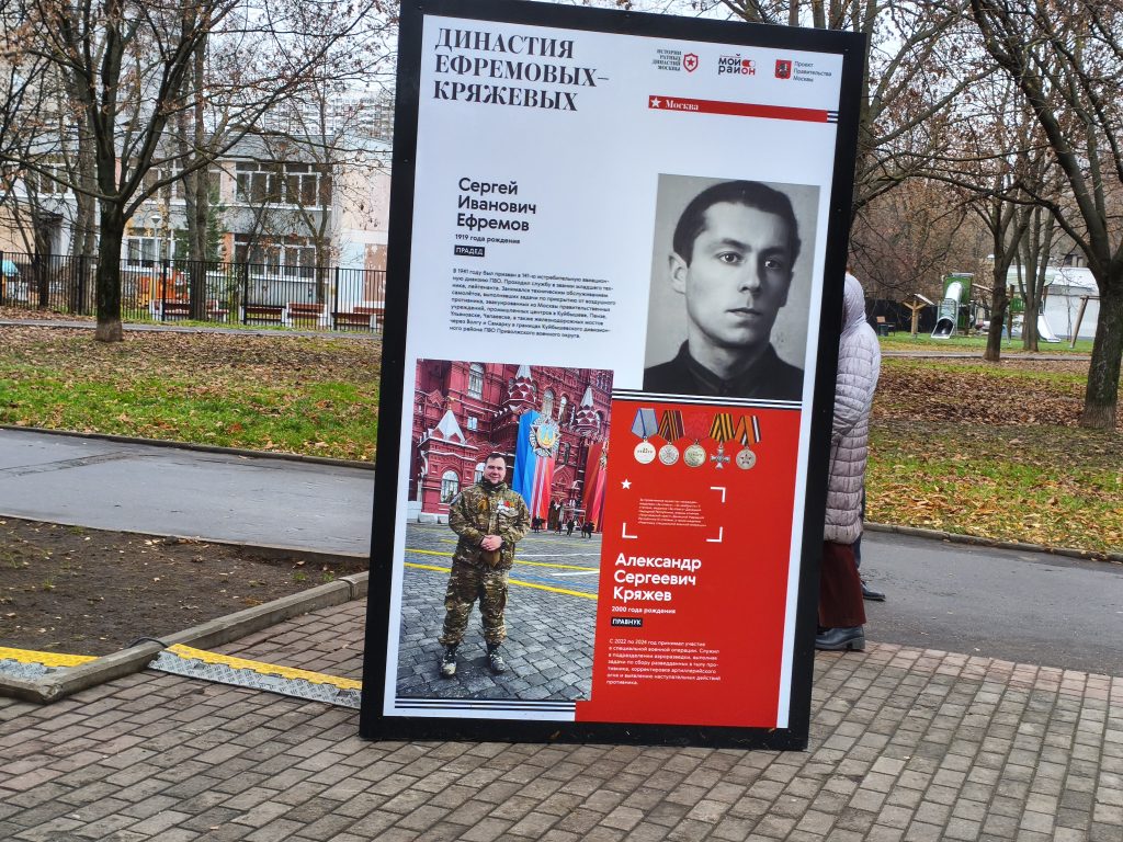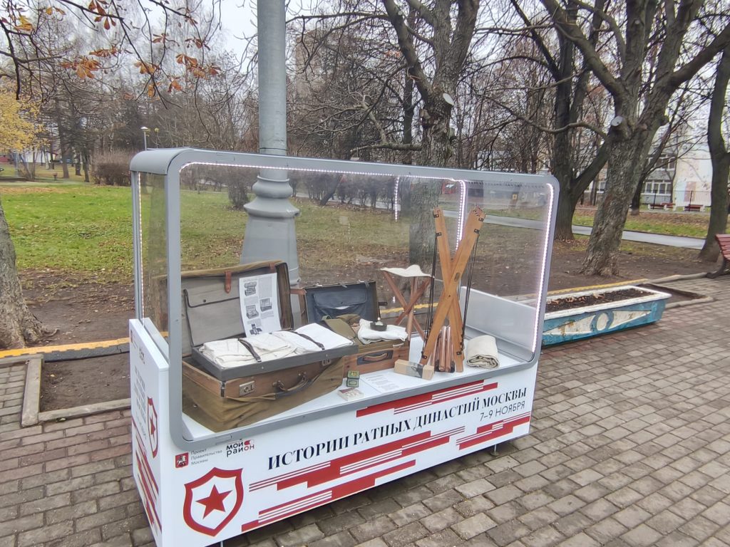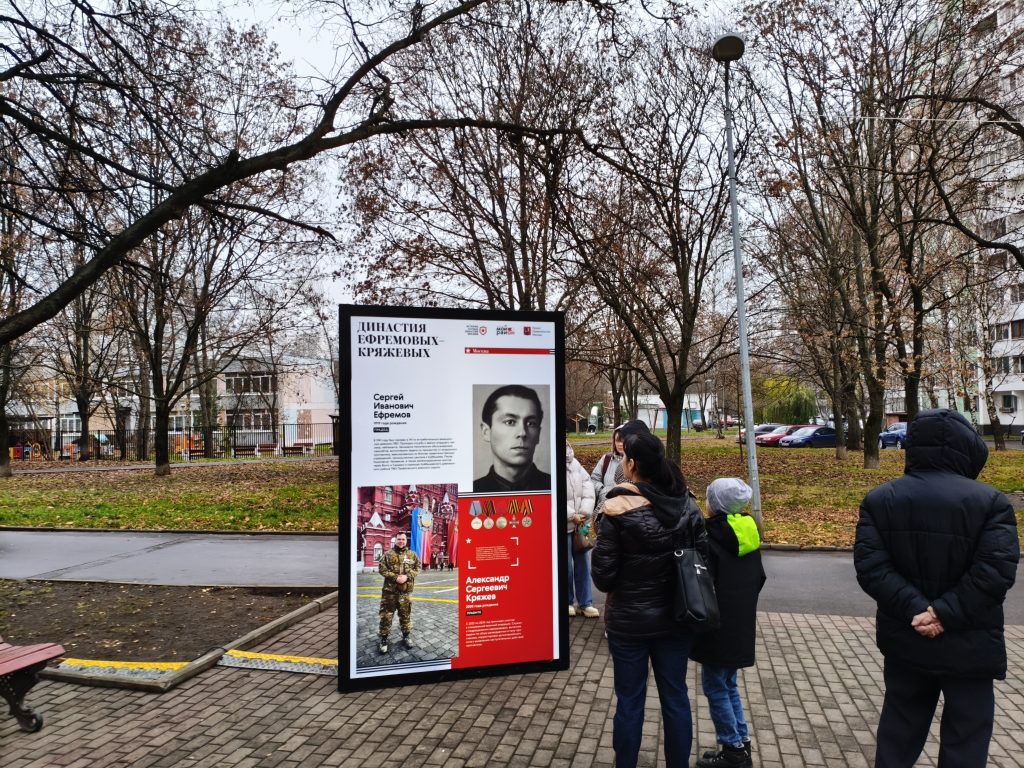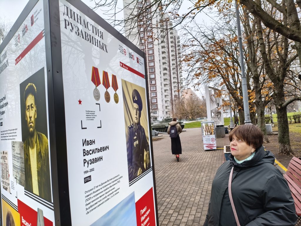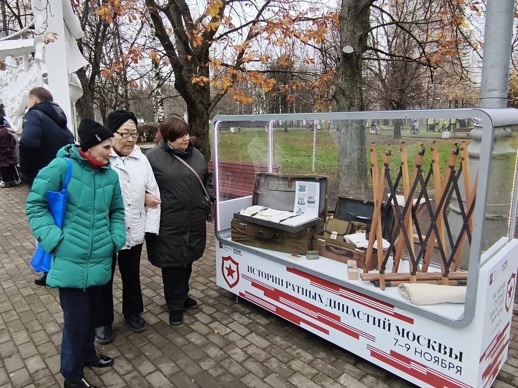 Уличная выставка «Истории ратных династий Москвы» с 7 по 9 ноября работала в Парке 30-летия Победы. Этот столичный проект был приурочен к годовщине знаменитого парада 7 ноября 1941 года и посвящен семьям, для которых защита Отечества стала делом чести, передаваемым от отцов к детям и внукам.