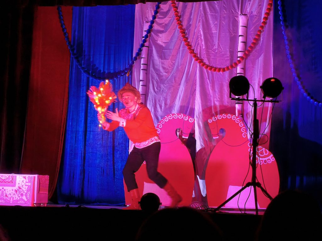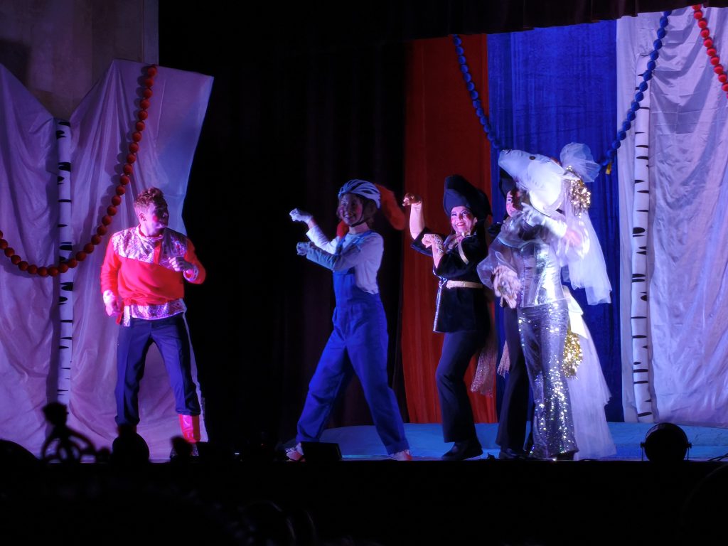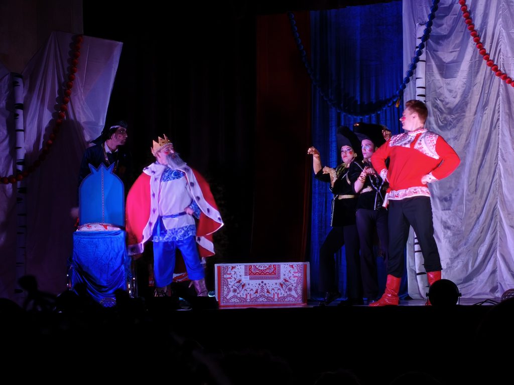 Потом на сцене для детей и их родителей сказку про Конька-Горбунка показали талантливые артисты Лаборатории современной драмы под руководством режиссера Ярославы Дубининой. Здесь конечно же были добрые персонажи и злодеи. Вместе с героями сказки дети путешествовали по сказочному лесу, любовались на царские палаты, ловили Жар-птицу и переживали за Конька-Горбунка.